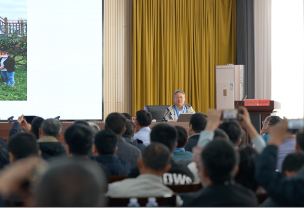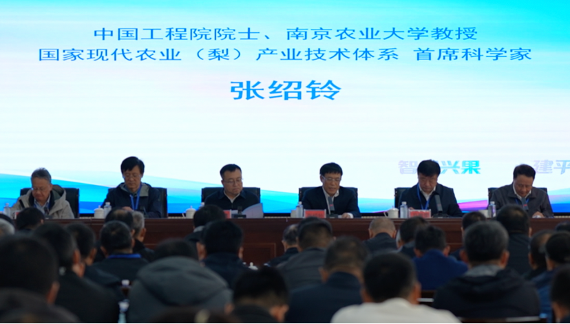 (中国工程院院士、南京农业大学教授、国家现代农业梨产业技术体系首席科学家张绍铃现场致辞。)